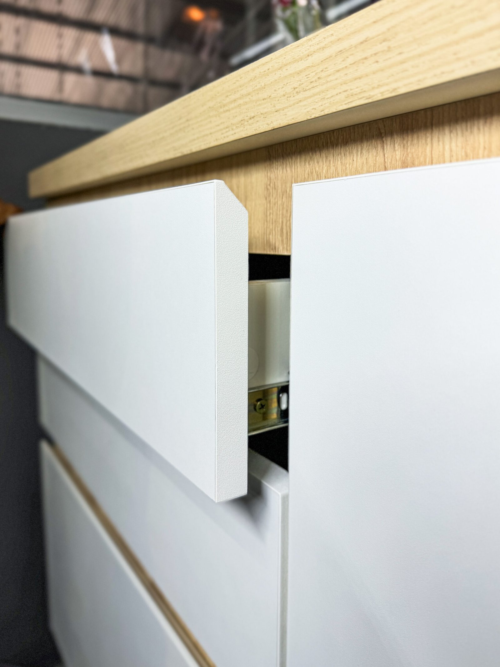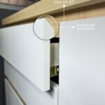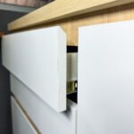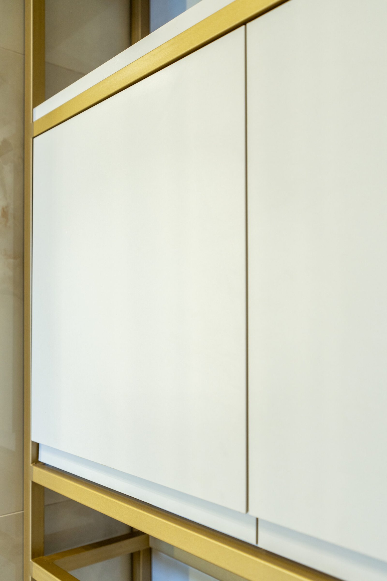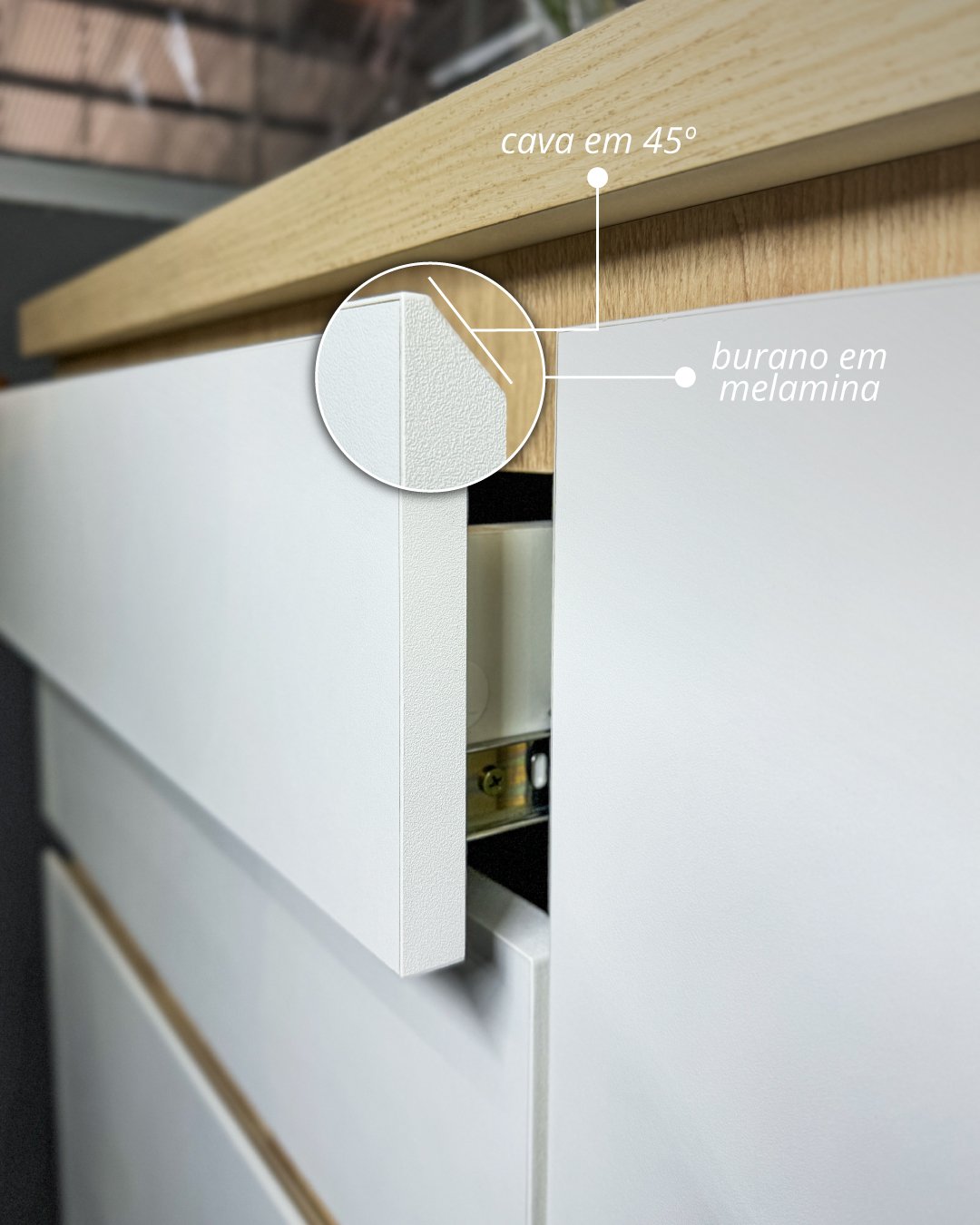 O mobiliário planejado traz puxadores discretos embutidos e acabamentos em MDF que garantem sofisticação minimalista, resultando em ambientes modernos e cheios de personalidade